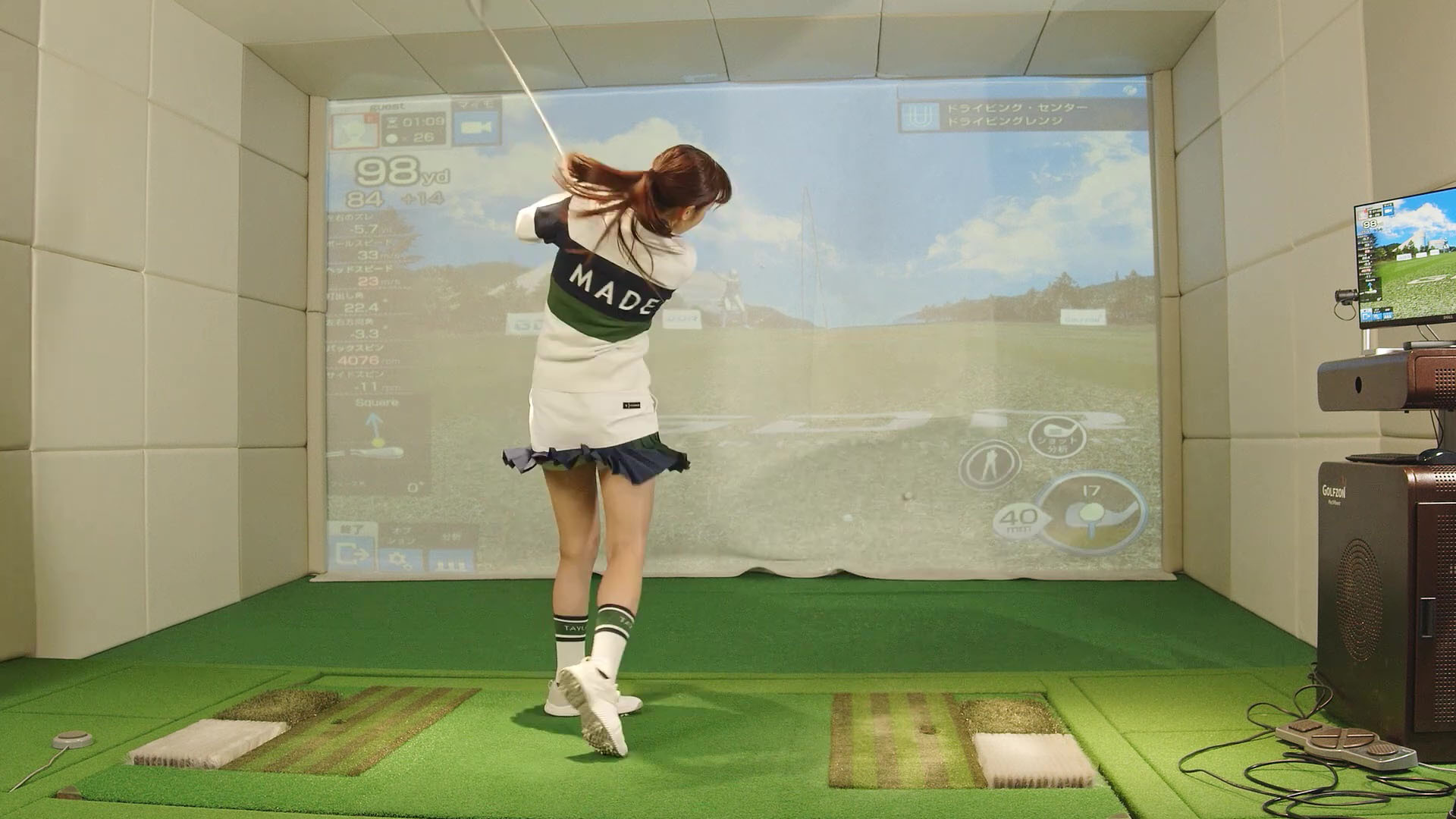 「そこでの鷲見はピンクのウエアに白のミニ丈スカート姿だったのですが、動画冒頭、コーチとトークを交わし『100切るぞ~!』と両手を大きく上にあげたとたん、ショーツらしきラインがクッキリと浮かび上がったんです」(エンタメ誌ライター)